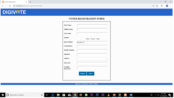 Literature review was done based on needs and requirements of the project. Web technologies such as HTML, CSS, JavaScript and PHP were studied. Apache and MySQL have been used for sever and database. Existing voting platforms and actual registration and voting processes were explored.